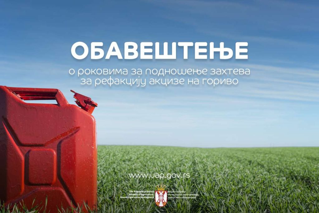 Министарство пољопривреде, шумарства и водопривреде обавештава пољопривредне произвођаче о роковима за подношење захтева за рефакцију акцизе на моторно гориво које…